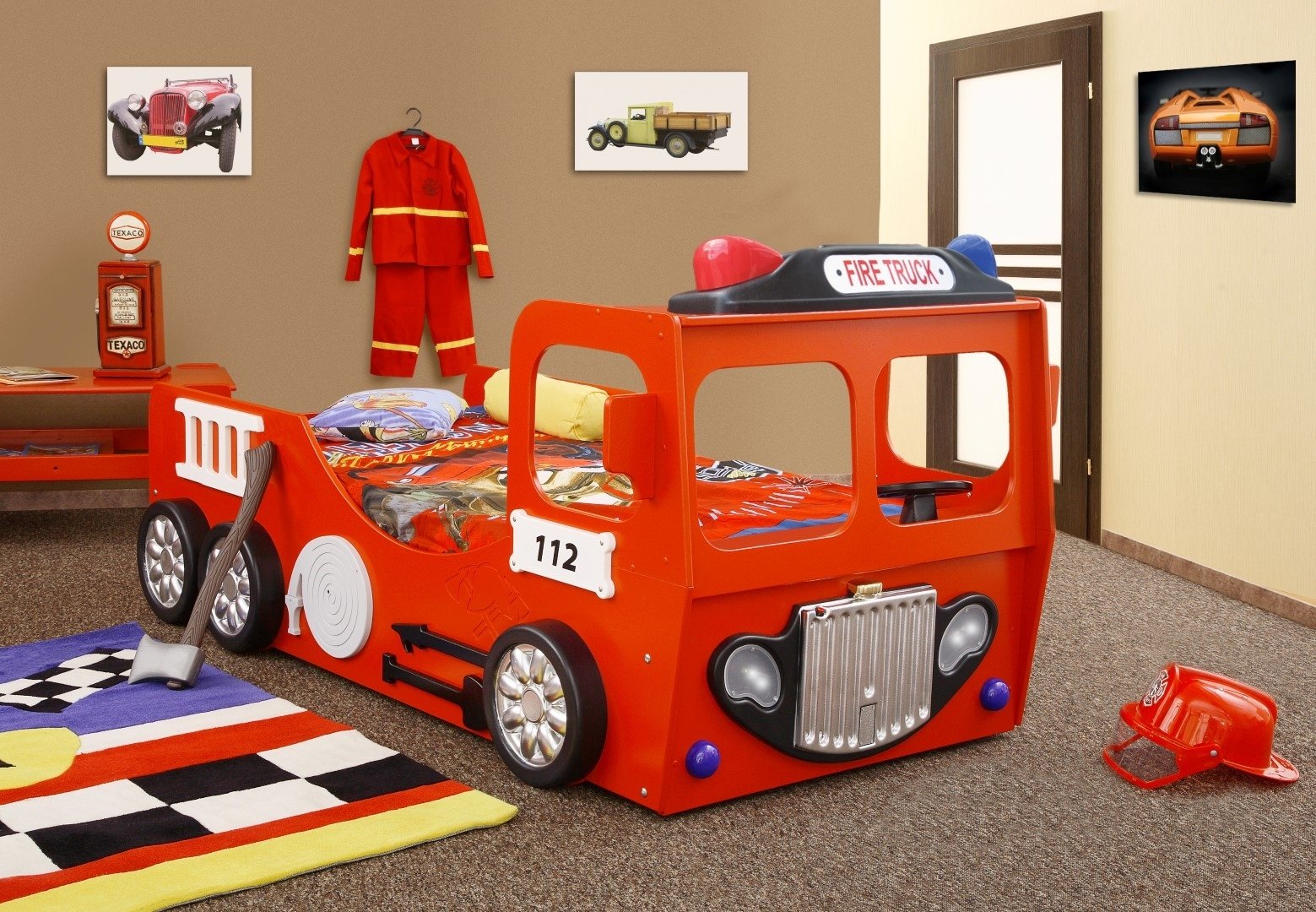 Fantastisch brandweerbed / kinderbed met verlichting, lattenbodem en een eenvoudig matras af fabriek.