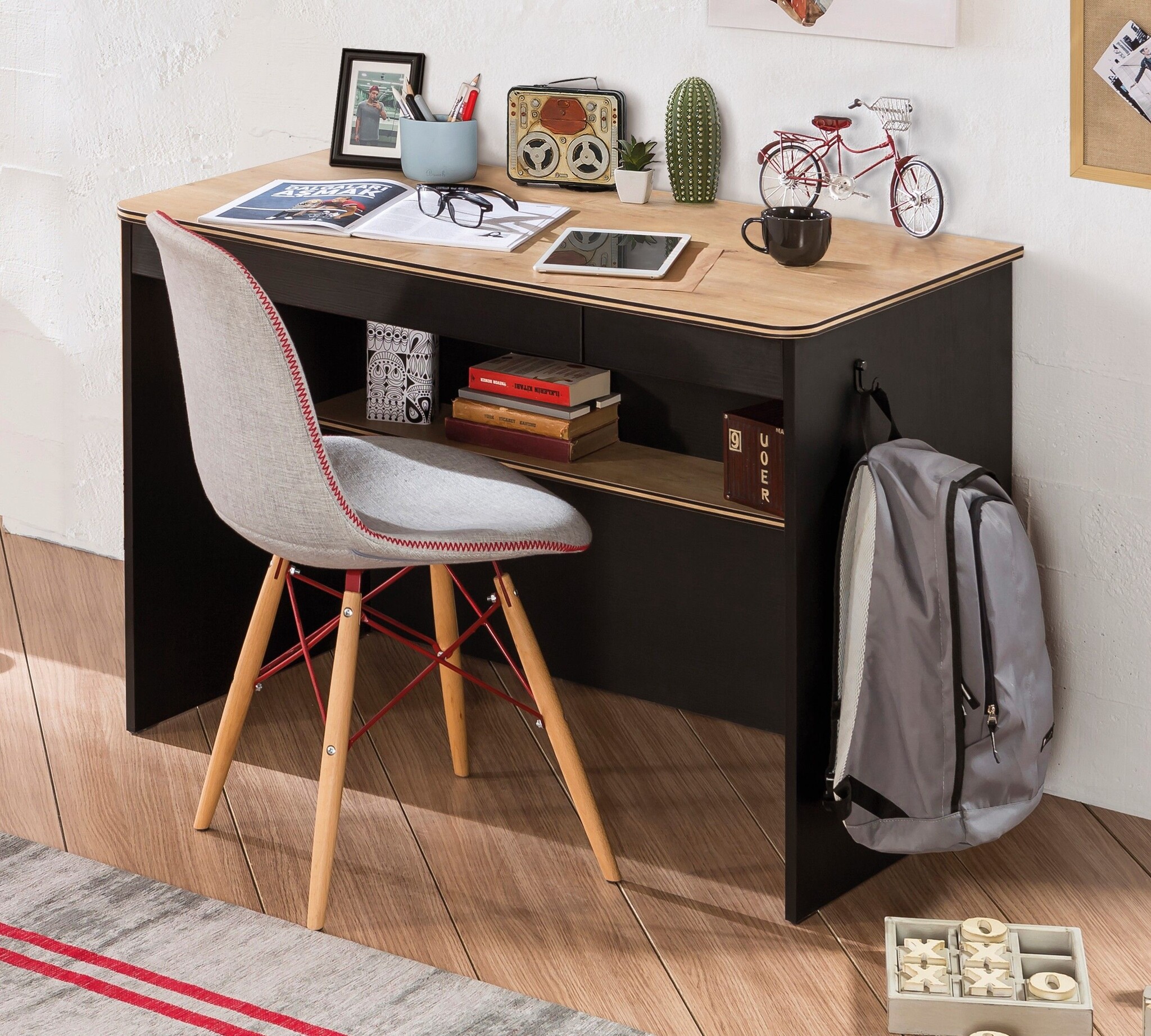 New York bureau een prachtige luxe en ook zeer hoogwaardige afgewerkt tiener bureau. Aan alle details is gedacht en het bureau is voorzien van mooie elementen met een bruin met zwarte afwerking. Het bureau heeft één kleine lade en bredere lade onder het schrijfgedeelte. Daarnaast is het mogelijk om er een bovenstuk van passend bij het bureau te bestellen. Het bovenstuk heeft een usb oplaadstation en een extra schap.