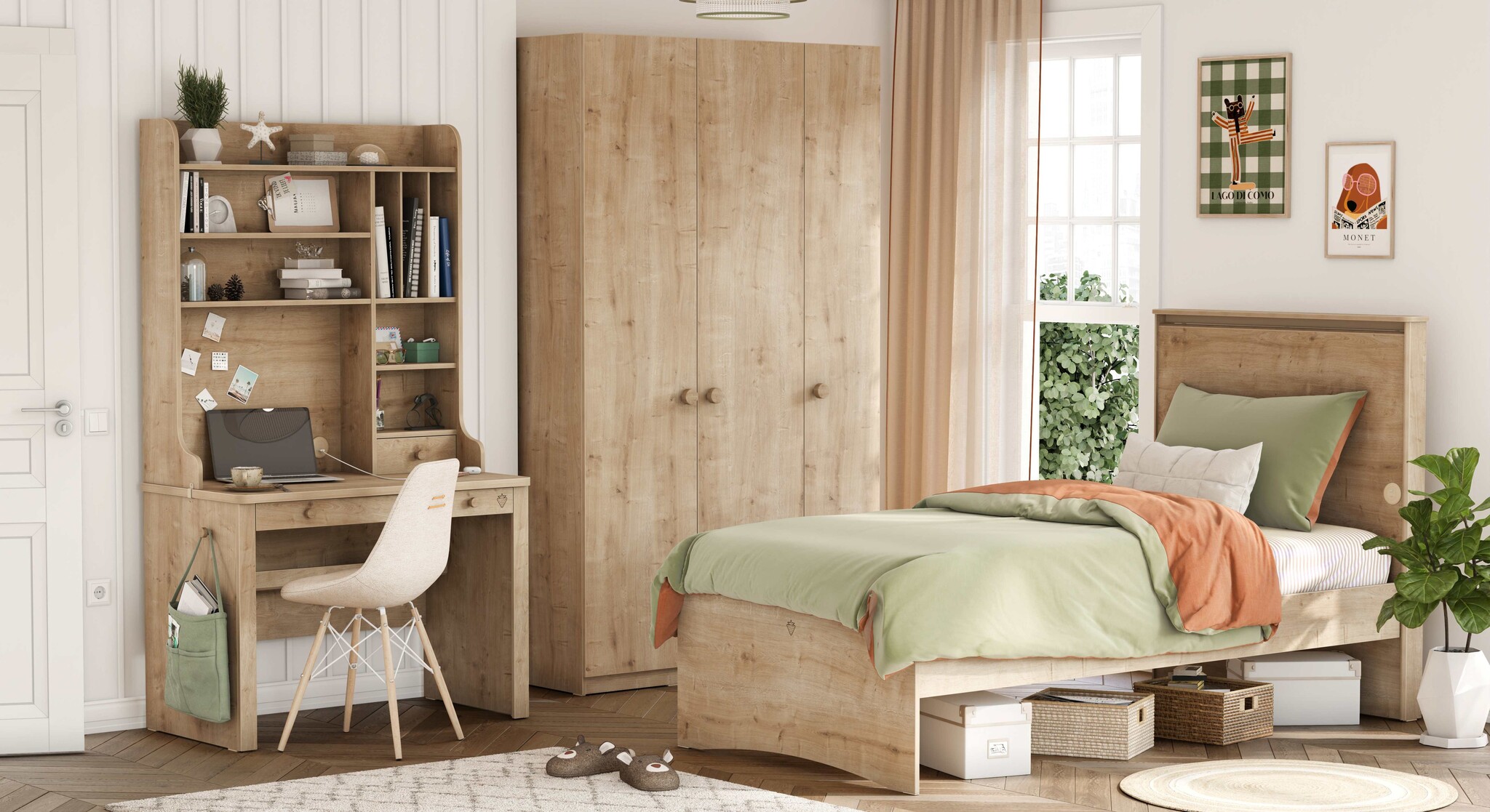 Deze fantastische kledingkast voor de Stockholm tienerkamer (kinderkamer) heeft 3 deuren die geruisloos sluiten dankzij het soft close systeem. De kinderkledingkast is hoogwaardig afgewerkt en geheel in een neutrale kleur met een hout look wat er zorgt dat de kast in elke slaapkamer geplaatst kan worden. Deze kledingkast heeft heel veel mogelijkheden om uw spullen op te bergen en is voorzien van zowel een hang als een leg gedeelte voor kleding.