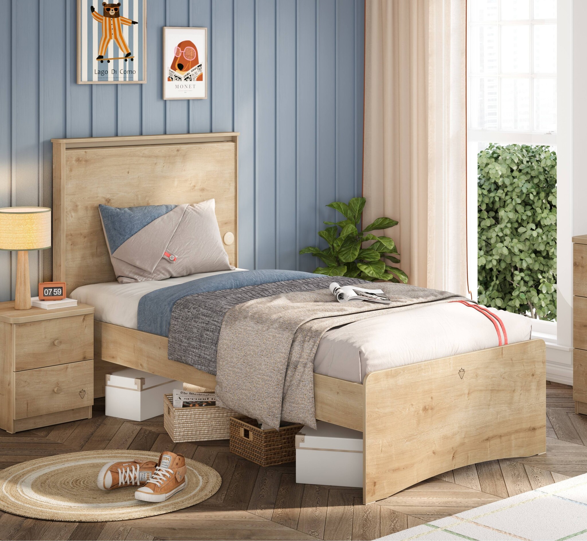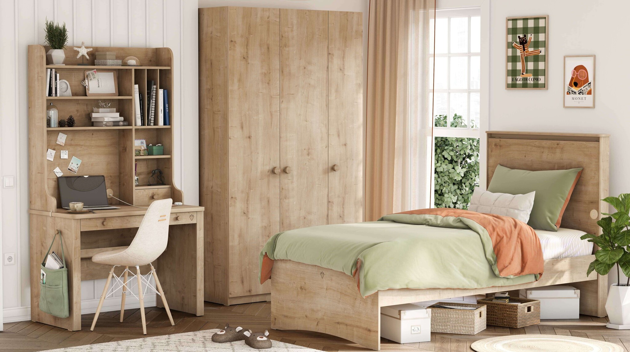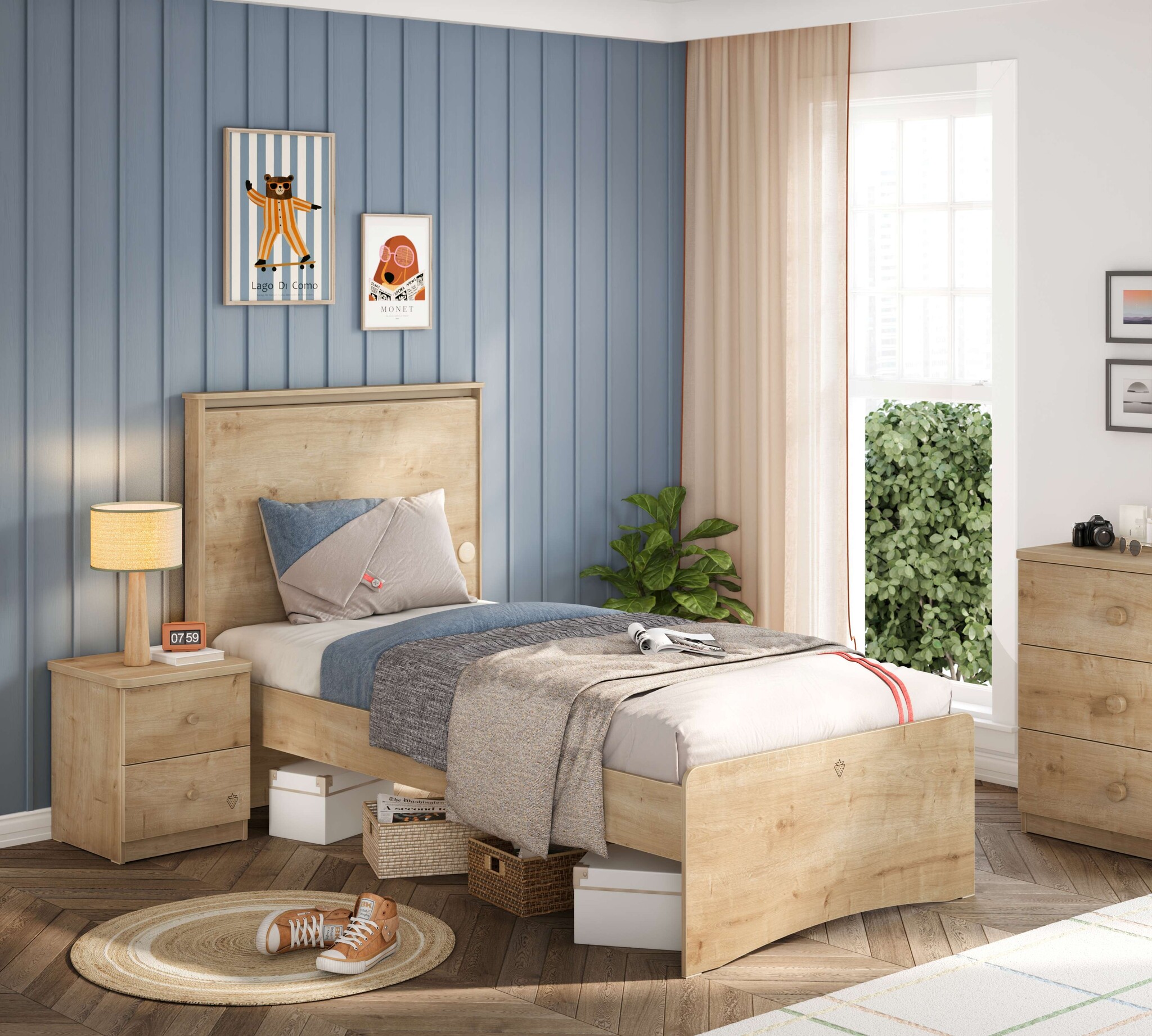 Dit kinderbed heeft een prachtige eikenhouten look die niet alleen stijlvol is, maar ook een warme sfeer in de kinderkamer creëert. De strakke afwerking en het moderne design maken het bed een perfecte aanvulling op elke kinderkamer, waardoor het niet alleen functioneel is, maar ook een esthetische waarde toevoegt aan de ruimte.